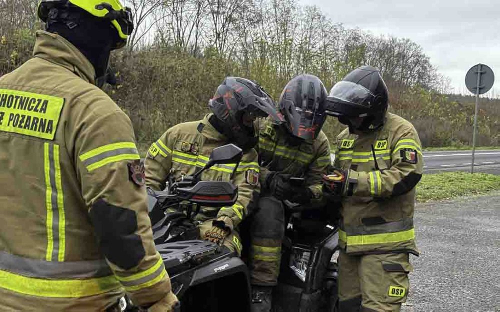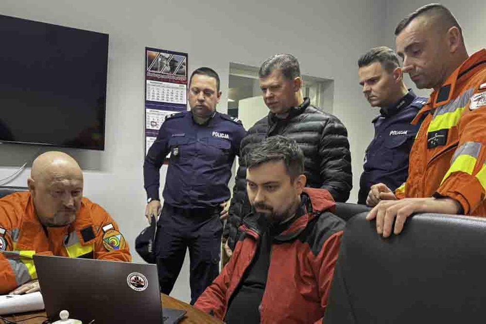 Trwają poszukiwana zaginionego 27-latka, z którym bliscy nie mogą nawiązać kontaktu. W działania zaangażowani są policjanci, a także strażacy, strażnicy leśni i graniczni. Po ciężkim terenie jeżdżą quady, a z góry teren jest obserwowany z pomocą drona.