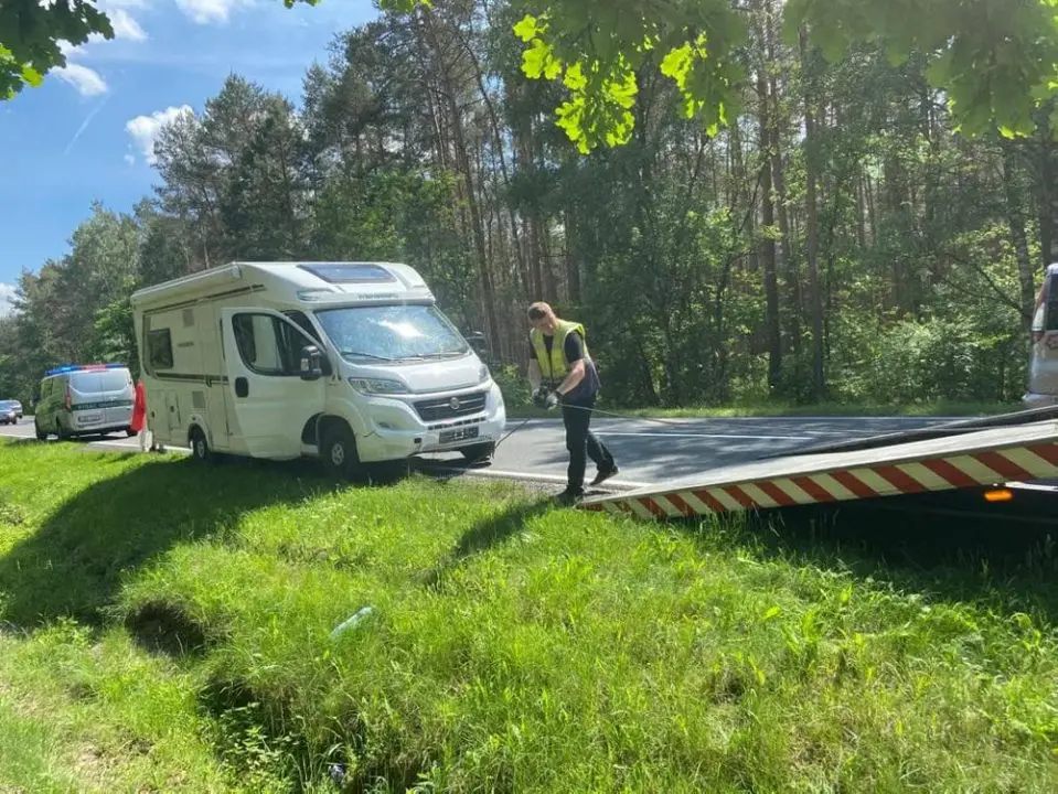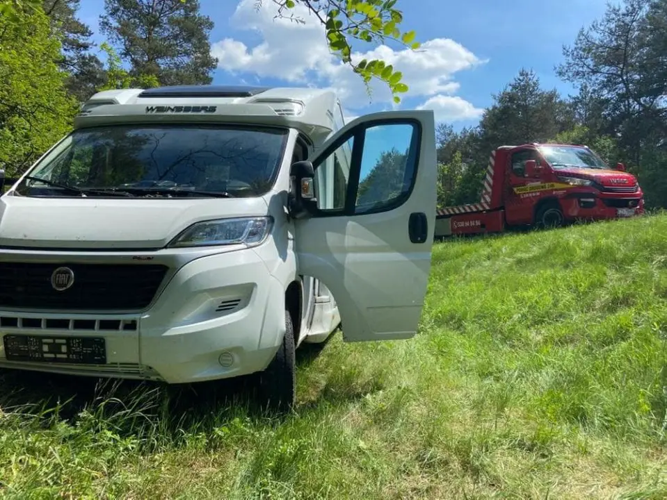 O zdarzeniu w sobotę, 5 czerwca, z samego rana powiadomił nas czytelnik. Kamper wypadł z drogi zaraz za rondem Piastów Śląski pod Zieloną Górą.
