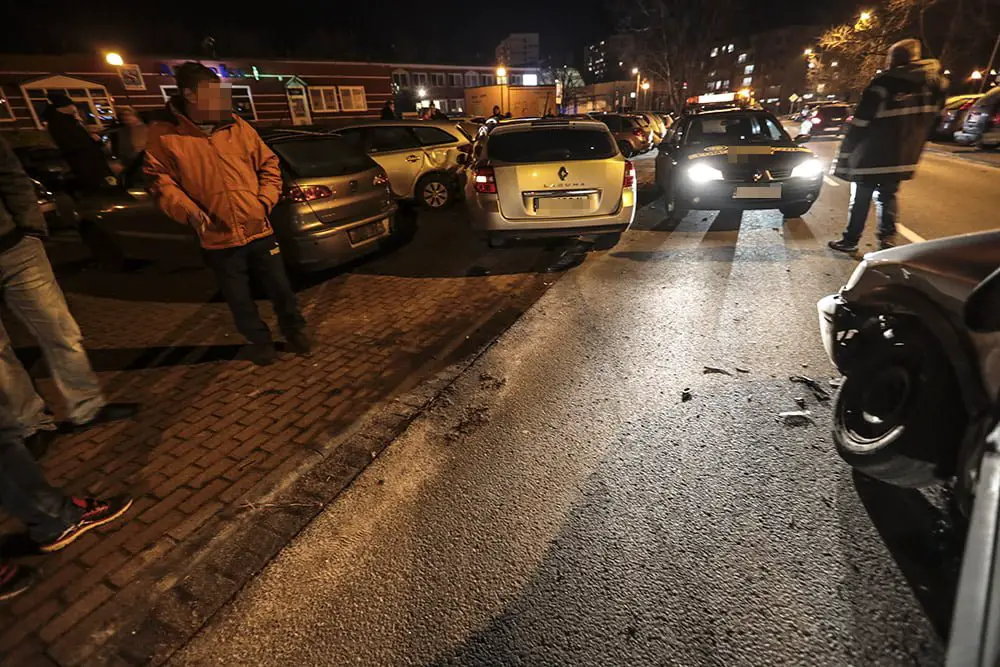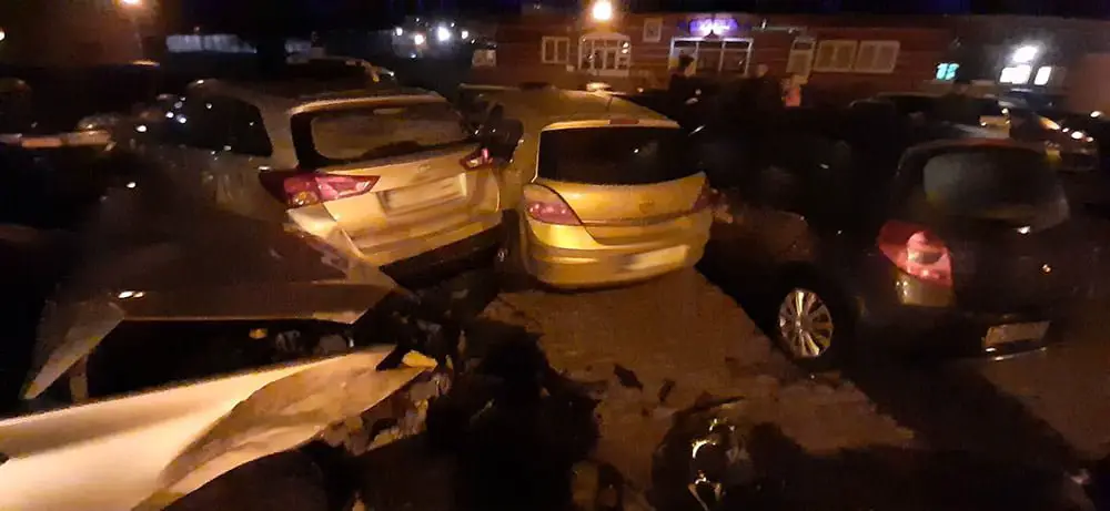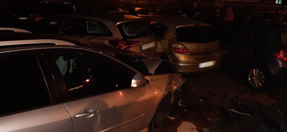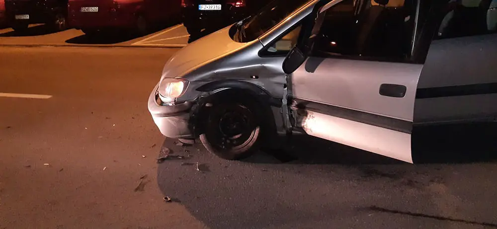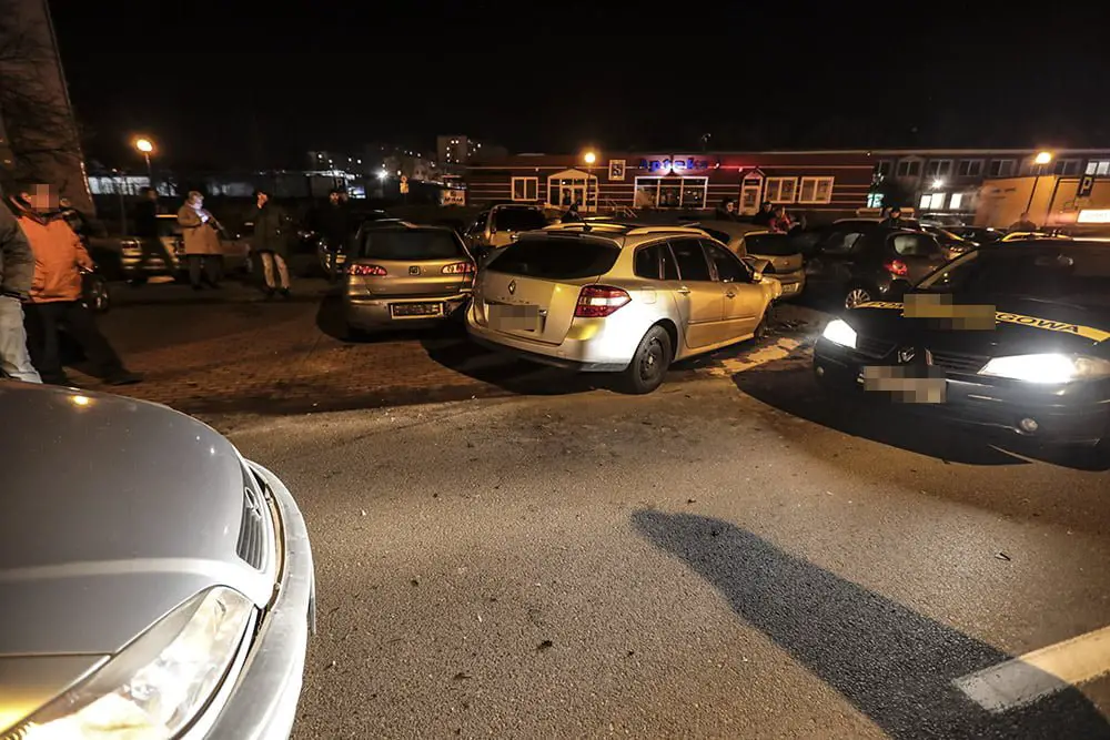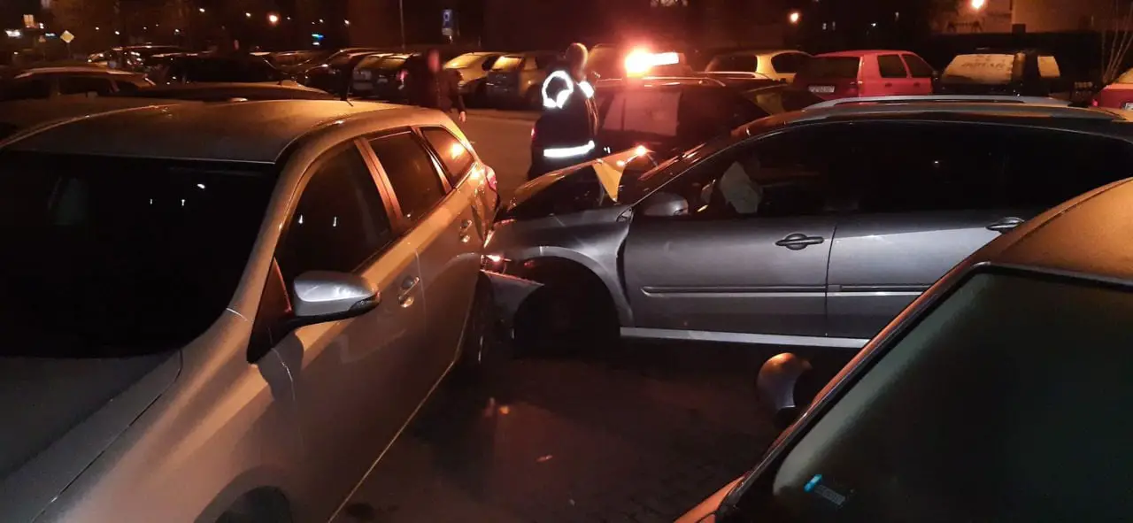 Kierujący oplem jechał ul. Zawadzkiego Zośki. Zaczął skręcać na parking. Wtedy w jego bok uderzył kierujący renault, który wyprzedzał opla. Po zderzeniu renault odbił się od opla i uderzył w zaparkowane dwa ople, seata i renault. W oplu jechała dwójka małych dzieci. Na szczęście nikomu nic się nie stało. Na miejsce kraksy została wezwana zielonogórska policja.