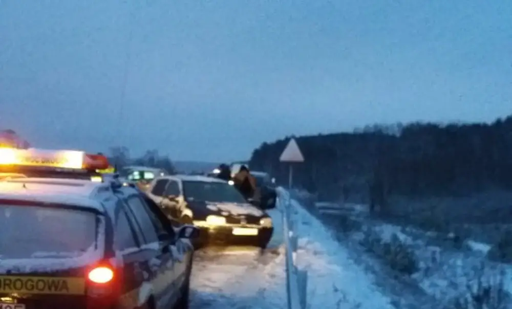 Na drodze z samego rana było lodowisko. Świadkowie mówią, że nie dało się jechać drogą. – Koła na zimowych kręciły się w miejscu, pod śniegiem był lód – napisał do nas jeden z kierowców.