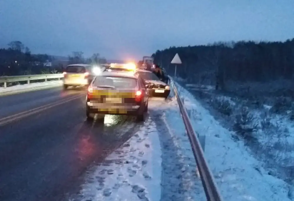 Do karambolu doszło w czwartek, 14 stycznia, z samego rana na trasie do strefy w Nowym Kisielinie. Uczestniczy w nim aż siedem samochodów. Na jezdni jest lodowisko.