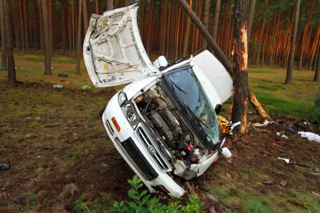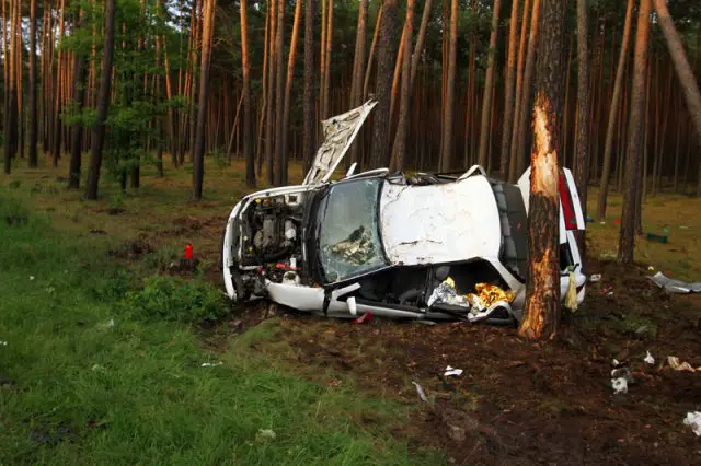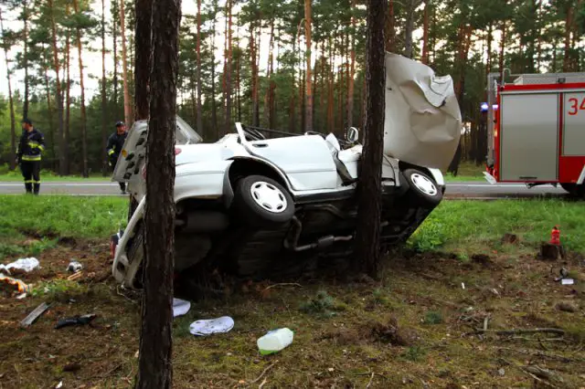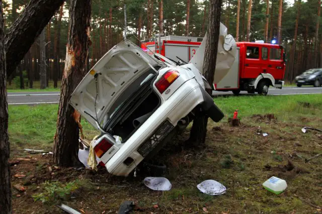Z naprzeciwka jechał samochód. Wtedy kobieta siedząca za kierownicą kii odbiła w prawo wracając na swój pas. Zrobiła to tak gwałtownie, że wyprzedzany samochód musiał hamować. Kia wypadł z drogi i z dużą siłą uderzyła dachem w drzewa przechylając jedno.