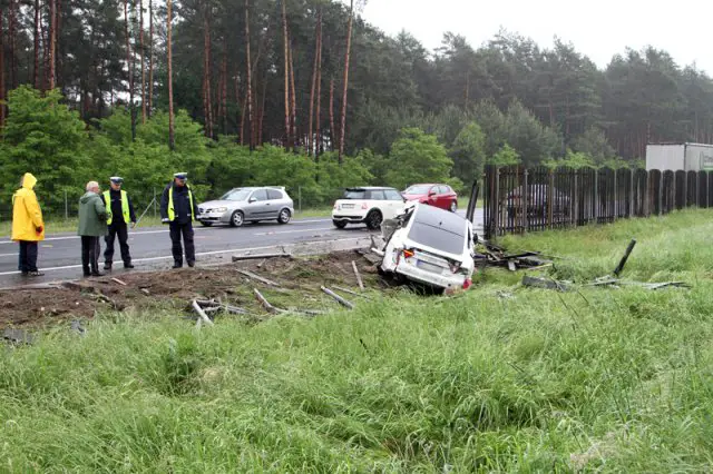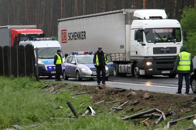 Audi jechało w kierunku Nowej Soli. Lał deszcz, na jezdni było ślisko. Na prostym odcinku drogi kierowca stracił panowanie nad kierownicą. Samochód musiał jechać z dużą szybkością. Wypadając z drogi dosłownie skosił rząd barierek ochronnych na odcinku kilkudziesięciu metrów. Audi wyleciało z drogi zatrzymując się w rowie na poboczu.