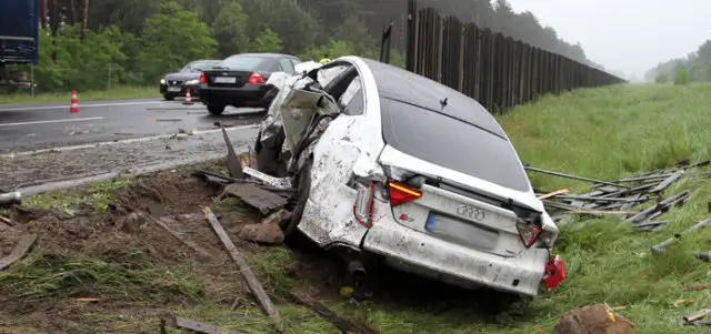 Luksusowe audi jechało w kierunku Nowej Soli. Na prostym odcinku S3 pod Zieloną Górą kierowca wypadł z drogi, ściął kilkadziesiąt metrów barierek i wypadł z drogi. Kierowca i pasażer zostali przewiezieni do szpitala. Kierujący stracił prawo jazdy. Zabrali mu je policjanci.