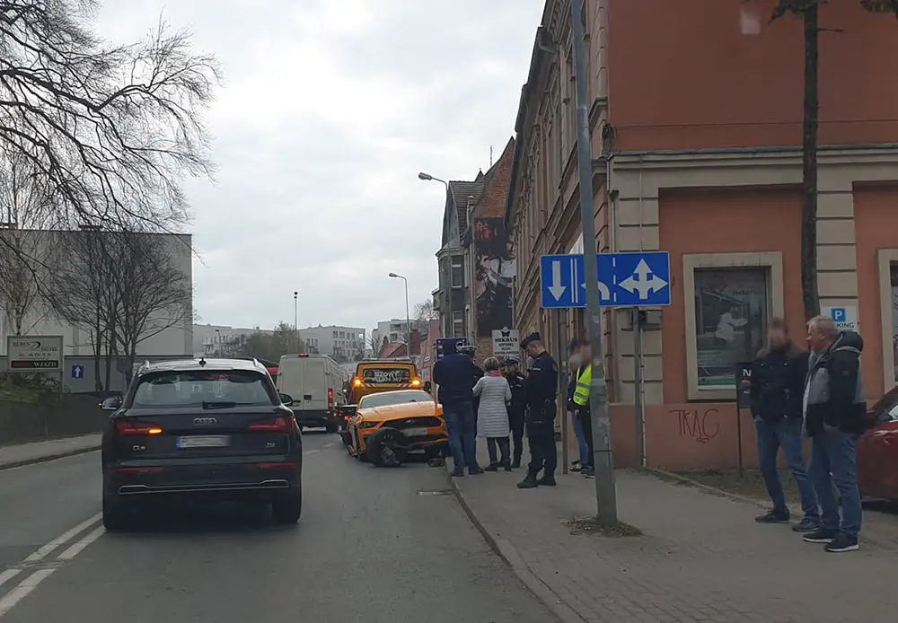 Do zdarzenia doszło w czwartek, 19 marca, na ul. Moniuszki. Kierujący fordem na ul. Moniuszki uderzył w lampy, znaki drogowe i wleciał na chodnik. Koło ford uderzyło w przejeżdżającą mazdę.