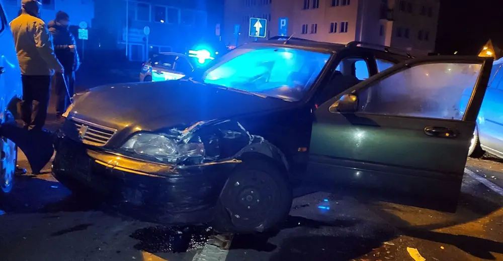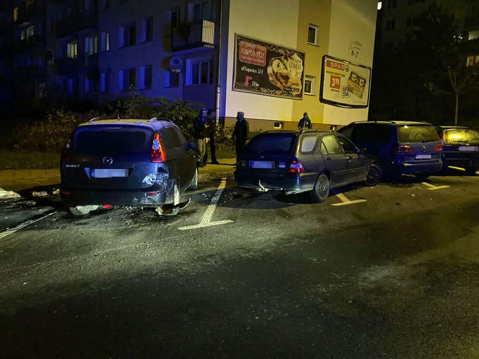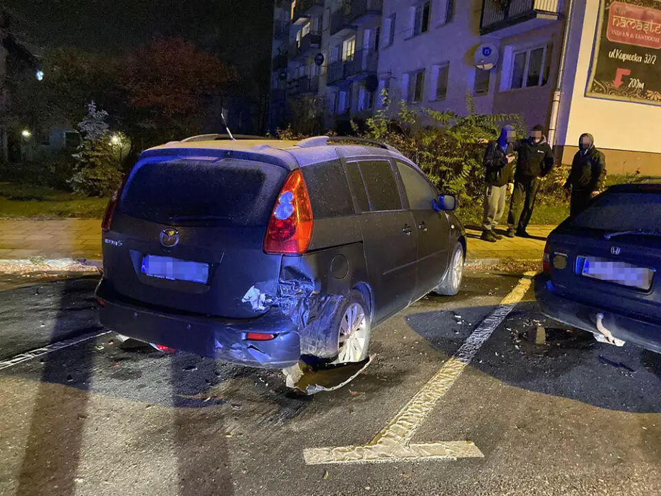 Kierujący hondą wjechał w ul. Chopina. Tam wpadł w poślizg. Honda uderzyła w mazdę oraz w volkswagena. – Z auta wysiadł, a raczej wypadł mężczyzna – mówią nam świadkowie wydarzeń. Kierowca hondy zataczając się zaczął uciekać.