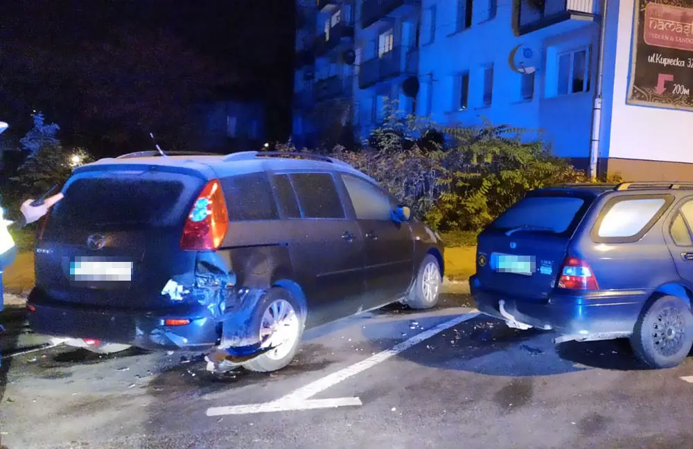 Do zdarzenia doszło w nocy z piątku na sobotę, 21 listopada, na ul. Chopina. Kierujący hondą uderzył w mazdę i volkswagena. Porzucił samochód i uciekł. Świadkowie mówią, że kierujący hondą był pijany. Trwa poszukiwanie kierowcy hondy.
