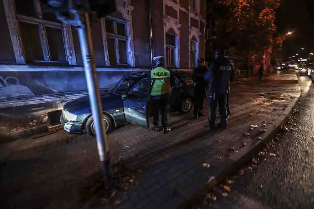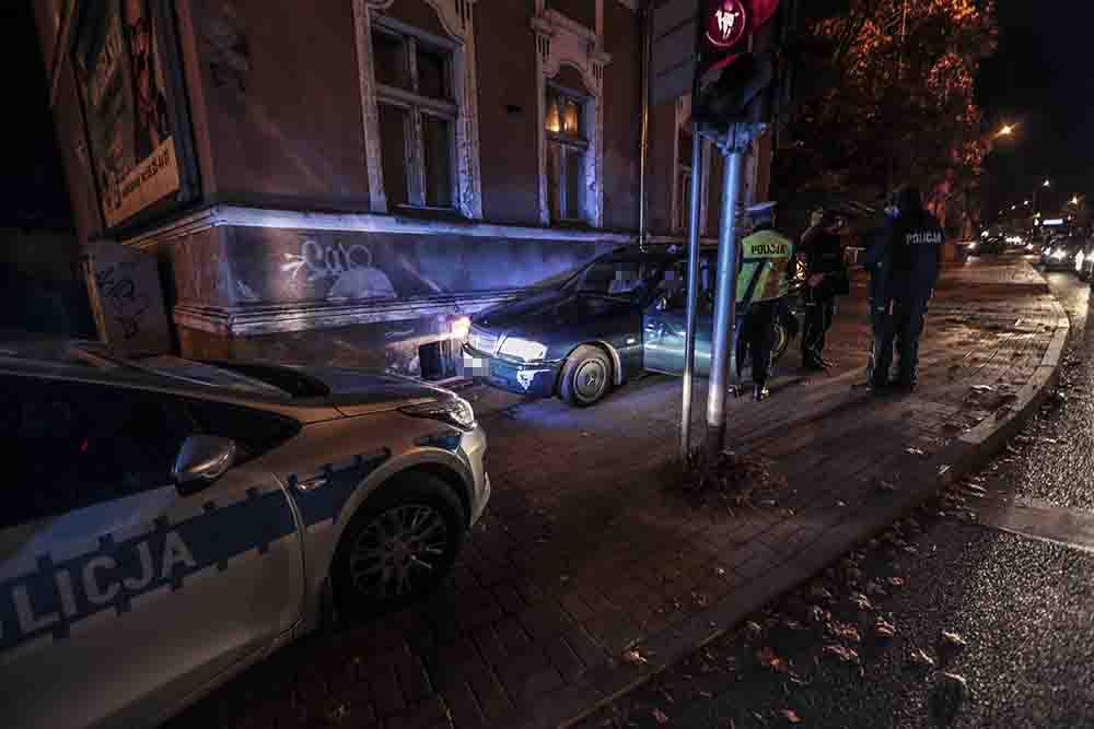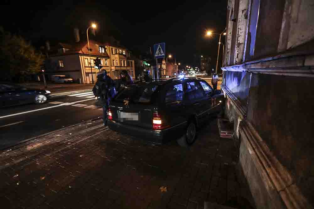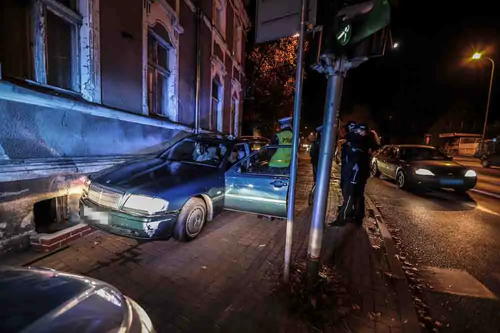 Kierujący mercedesem jechał ul. Wrocławską z kobietą i dzieckiem w kierunku centrum miasta. Nagle samochód zjechał na lewą stronę jezdni i po chwili nagle skręcił ostro w prawo. Mercedes wjechał na chodnik i uderzył w ścianę kamienicy.
