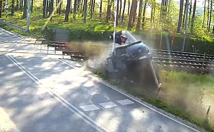 PKP Polskie Linie Kolejowe S. A. opublikowały film ze zdarzenia, do którego doszło na przejeździe kolejowym w Żabieńcu pod Piasecznem (woj. mazowieckie).