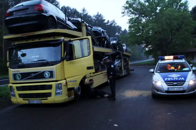 Dwaj litewscy kierowcy jechali pijani ciężarówką z samochodami z Niemiec. Jeden był tak pijany, że wypadł z kabiny ciężarówki. Samochód zatrzymała zielonogórska drogówka.
