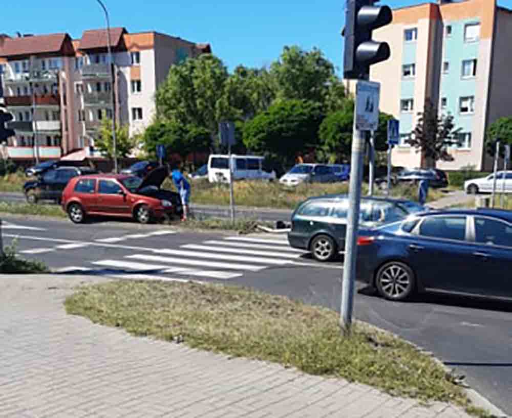Kierujący volkswagenem jadąc za szybko nie zauważył samochodu zwalniającego przed skrzyżowaniem i odbił w lewo chcąc uniknąć uderzenia w tył auta. Wtedy wypadł z drogi i z dużą siłą uderzył w słup sygnalizacji świetlnej. Samochód wyrwał słup z ziemi. W efekcie na skrzyżowaniu ulic Batorego, Rzeźniczaka i Zamoyskiego nie ma świateł. Na miejscu jest zielonogórska policja.