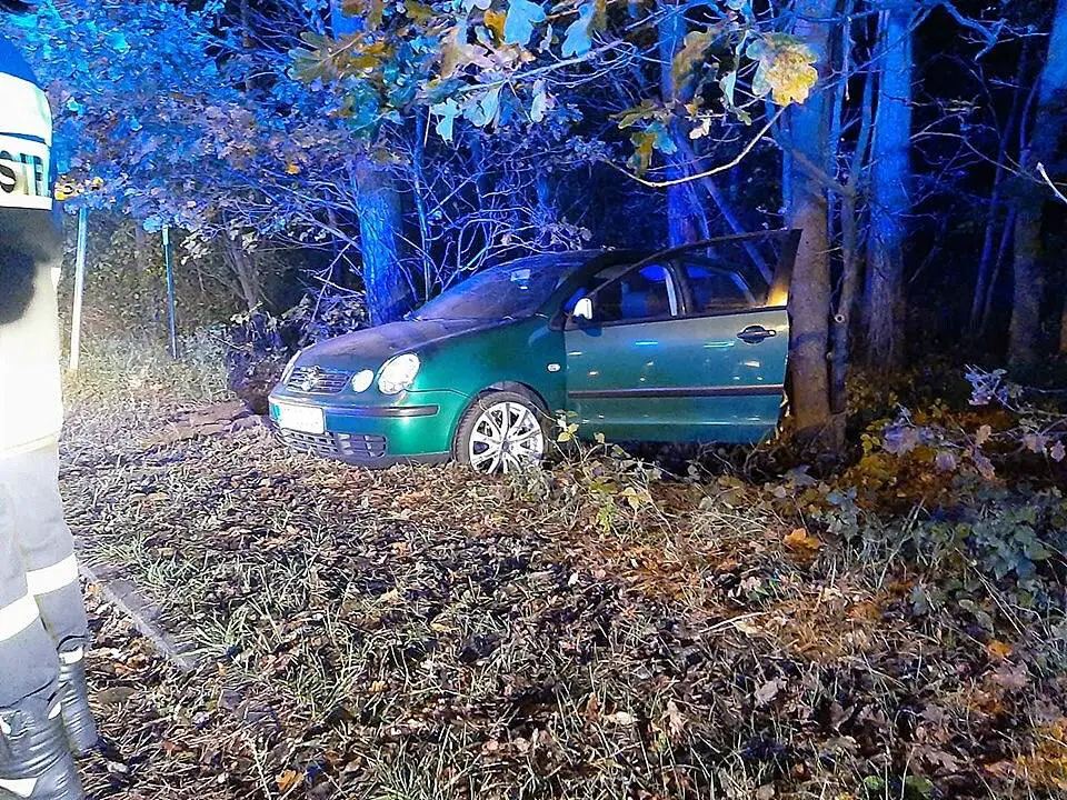 Do zdarzenia doszło około godz. 2.00 w nocy. Skwierzyńscy strażacy zostali wysłani na ul. Leśną. Kiedy wóz OSP Skwierzyna dotarł na miejsce strażacy zobaczyli samochód stojący między drzewami. To był volkswagen polo na niemieckich numerach rejestracyjnych. Po chwili okazało się, że na miejscu jest mężczyzna, któremu na szczęście nic się nie stało. Był pijany. Na miejsce dojechali policjanci. Wyjaśniają czy pijany mężczyzna prowadził samochód w chwili zdarzenia.
