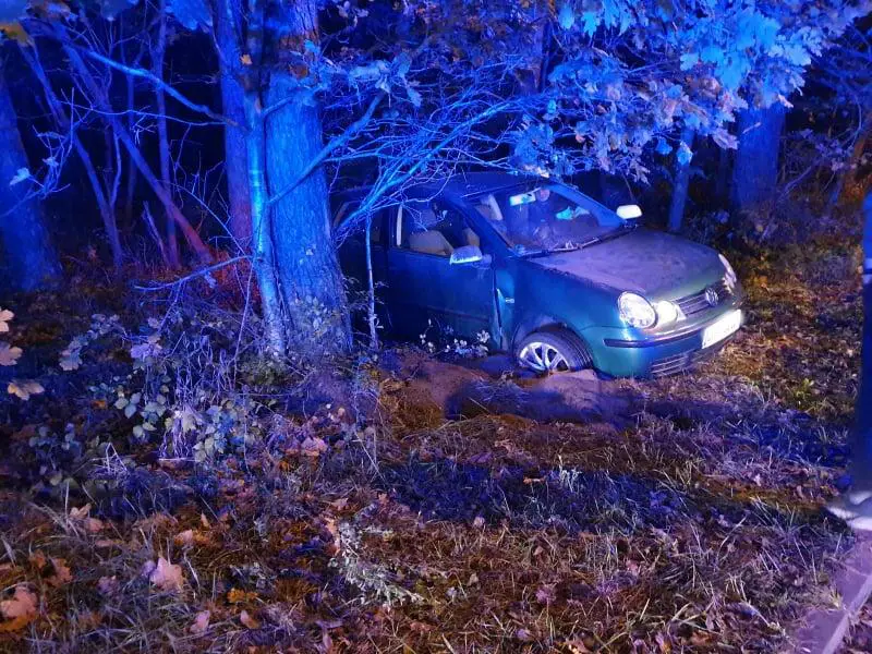 Do zdarzenia doszło we wtorek, 29 października, na ul. Leśnej w Skwierzynie. Kierujący volkswagenem polo wypadł autem z drogi. Policja ustala czy prowadził po pijanemu.