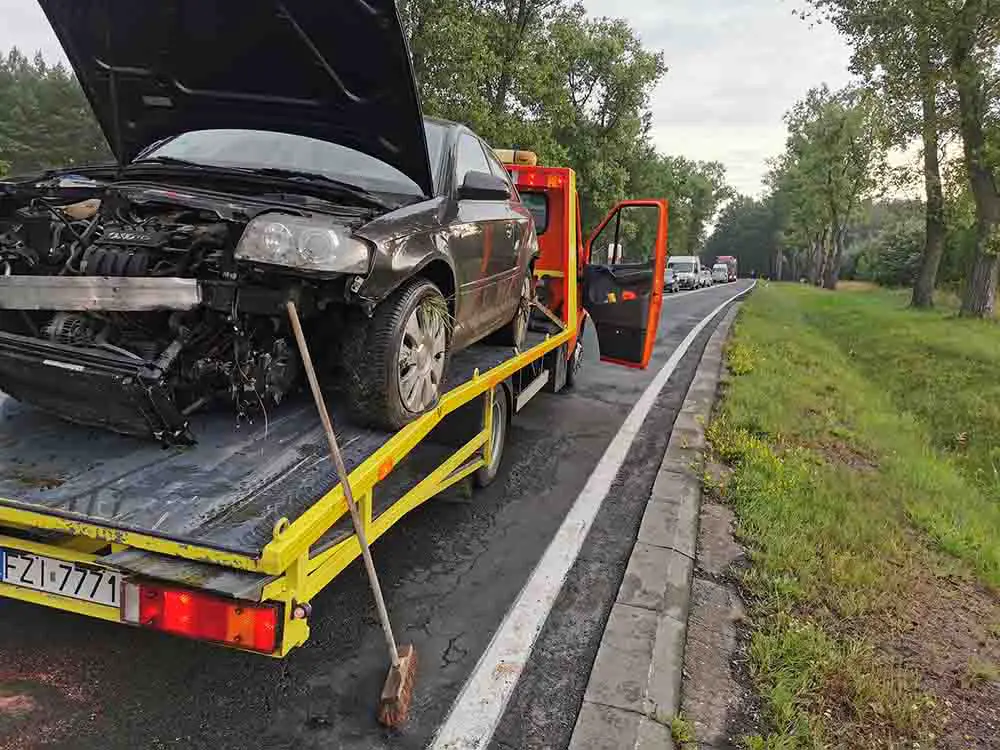 Kierująca audi jechała w kierunku Nowogrodu Bobrzańskiego. Na śliskiej drodze wpadła w poślizg i straciła panowanie nad samochodem. Audi wypadło z drogi i zaryło mocno w pobocze. Na miejsce dojechały wozy straży pożarnej oraz żarska policja. Na szczęście kierującej nic się nie stało. Zdarzenie zostało zakwalifikowane jako kolizja. Laweta pomocy drogowej z Nowogrodu Bobrzańskiego wyciągnęła już rozbity samochód z pobocza.