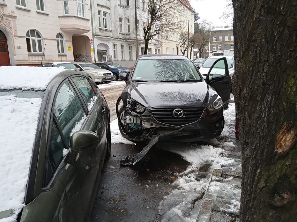Do zdarzenia doszło we wtorek, 19 stycznia, na ul. Krzywoustego w Gorzowie. Kierujący mazdą uderzył w bramę kamienicy i zaparkowanego citroena.