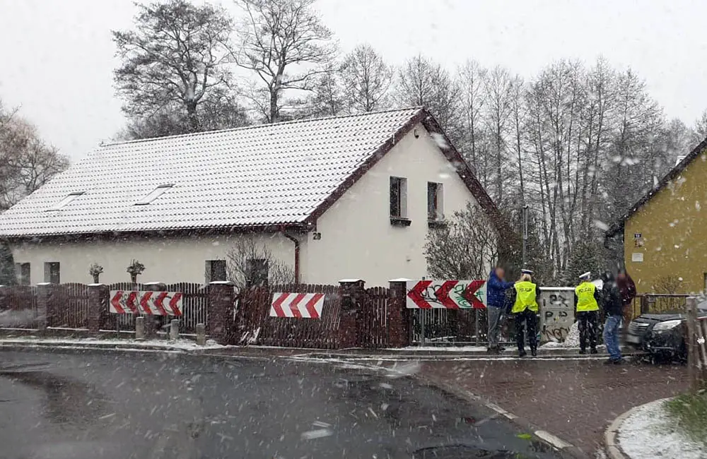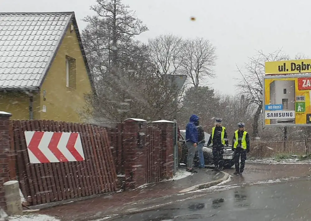 Do zdarzenia doszło we wtorek, 31 marca, z samego rana na ul. Jędrzychowskiej. Kierowca opla wpadł w poślizg na zakręcie i uderzył w ogrodzenie domu. Na szczęście nikomu nic się nie stało.