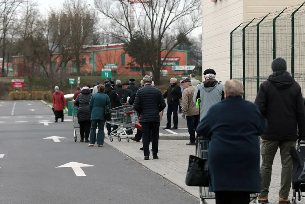 W czwartek, 2 kwietnia, pod marketami utworzyły się kolejki w godzinach dla seniorów. Na wejście do sklepu trzeba było czekać nawet 1,5 godziny.
