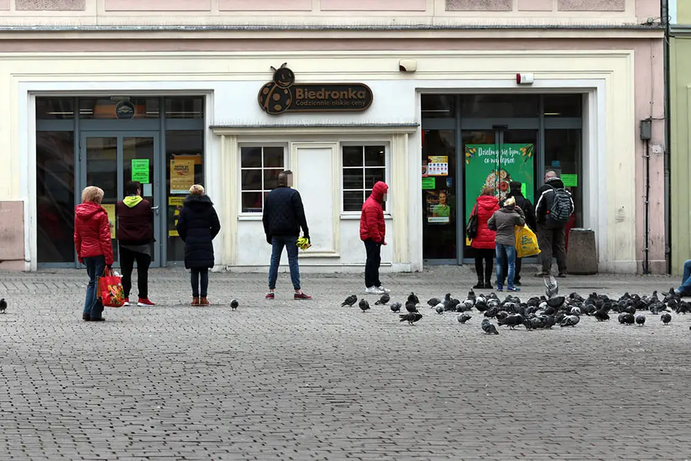 Stanisławę Szarpak spotkaliśmy pod Biedronką przy ul. Wyszyńskiego. – Stoję już ponad godzinę w oczekiwaniu na wejście do sklepu – przyznała pani Stanisława. W godzinach dla seniorów kolejki były pod każdym marketem w mieście. Długa kolejka ustawiła się koło Auchan. Ludzi w kolejce systematycznie przybywało. Więcej dochodziło do kolejki niż wychodziło z zakupami. – Ci co weszli mają czas. Proszę zobaczyć ten pan z panią przeglądają iglaki, a powinni kupić jedzenie, niezbędne rzeczy i wyjść robiąc miejsce innym – oburzał się pan Roman. Zapytaliśmy mężczyznę czy rzeczywiście najbardziej teraz potrzebuje drzewka do ogródka i na to traci czas. Nic nam nie odpowiedział, tylko zniknął w sklepie. Kolejki były też pod Nett przy ul. Ogrodowej oraz Biedronką na Jędrzychowie. Proszę sobie wyobrazić co się będzie działo pod sklepami tuż przed świętami – mówi pełna obaw Małgorzata Budzych. Kolejka była też przed Biedronka koło ratusza oraz przy aptece obok. Ludzie stali również do wejścia na pocztę na Placu Pocztowym. Niestety, jak na razie innego wyjścia nie ma. Wszyscy muszą stosować się do zaostrzonych zasad walki z pandemią koronawirusa, chociaż są one niezwykle uciążliwe.