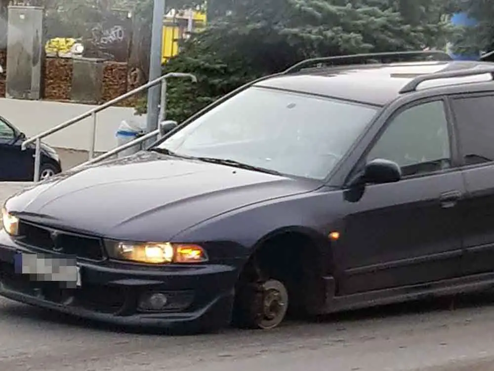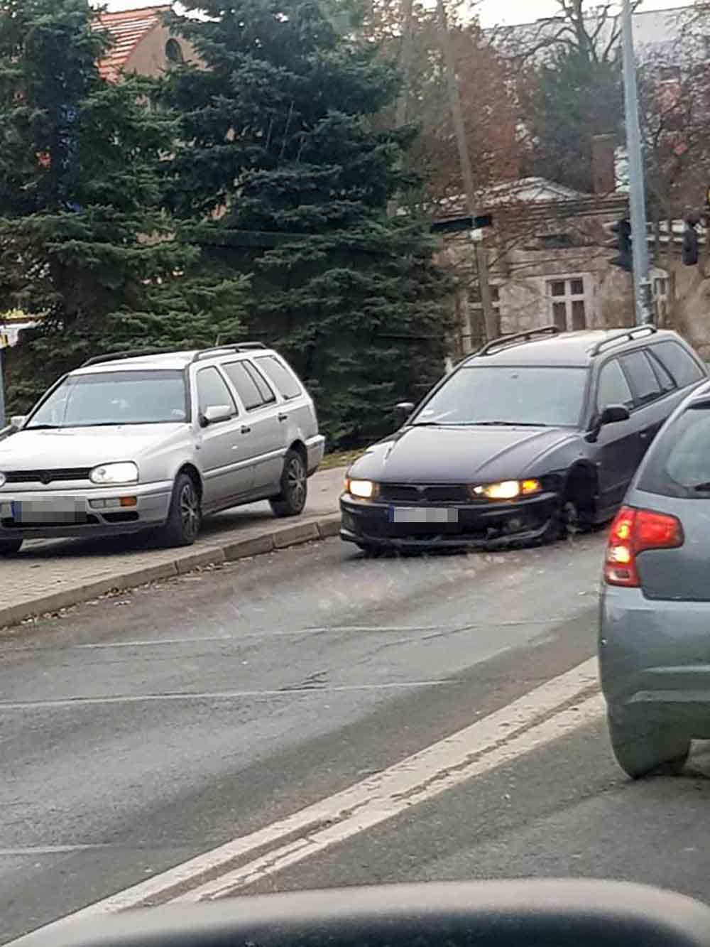 O zdarzeniu poinformował nas Czytelnik. Mitsubishi stoi na jezdni. Na miejsce została wezwana zielonogórska policja.