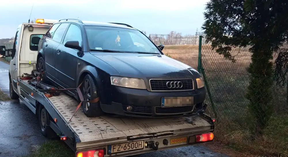 Samochód pijanego kierowcy na polecenie zielonogórskiej policji zabezpieczyła pomoc drogowa Maxmar. Koszty holowania i przechowania na strzeżonym parkingu pokryje właściciel audi.