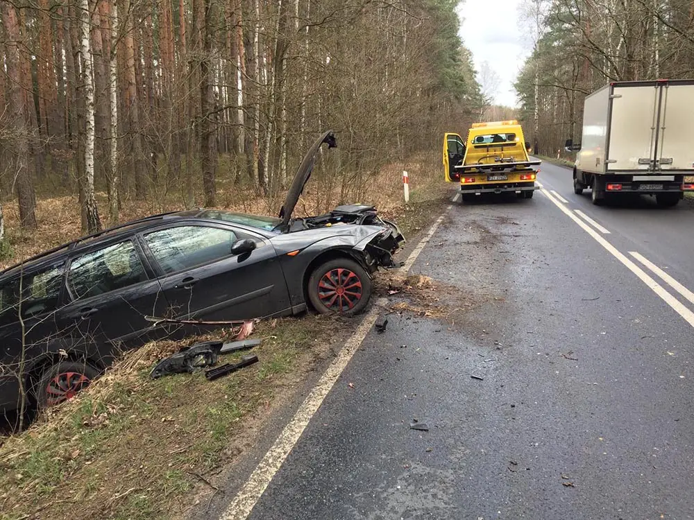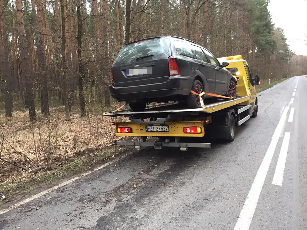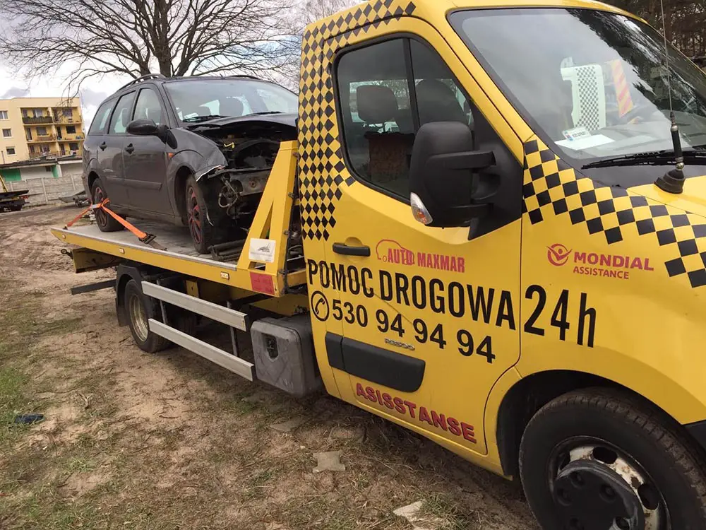 Na polecenie policji, rozbity ford został procesowo zabezpieczony przez pomoc drogową Maxmar.