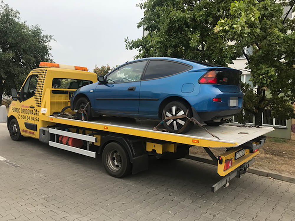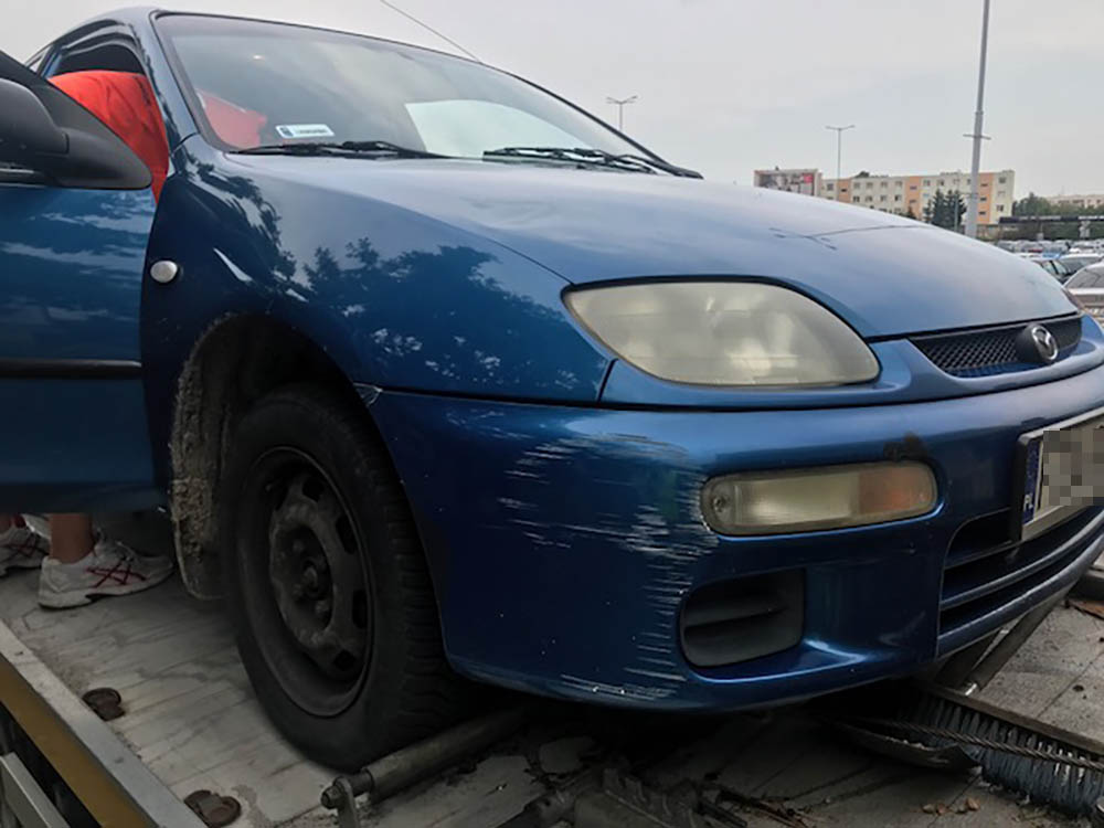 Mazdę zabezpieczyła wezwana przez policję pomoc drogowa Maxmar. Koszty holowania poniesie właściciel samochodu.
