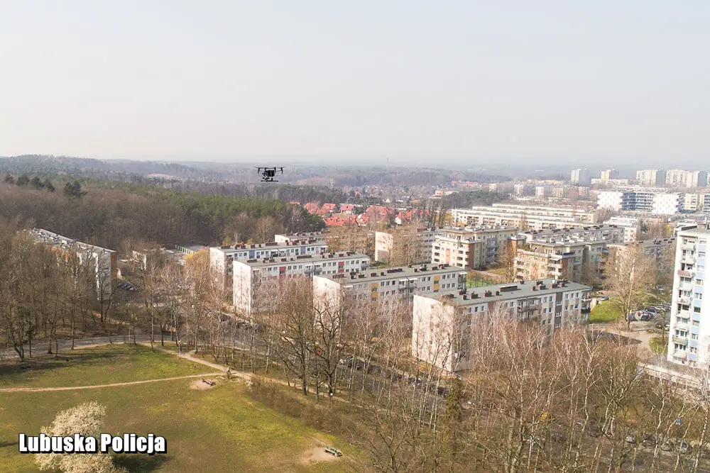 Zielonogórscy policjanci wspomagani przez strażaków z OSP Jarogniewice patrolowali miasto przy użyciu drona. Z powietrza kontrolowali miejsc, a gdzie mieszkańcy mogą się gromadzić wbrew obowiązującym zakazom. To element walki z koronawirusem.
