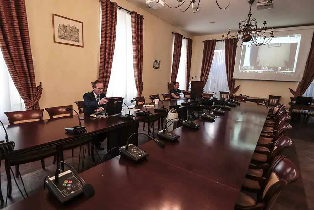 W środę, 22 kwietnia, odbyła się próba do piątkowej sesji rady miasta. Na sali w ratuszu byli tylko przewodniczący rady Piotr Barczak i radny Paweł Wysocki. Sesja odbędzie się online.