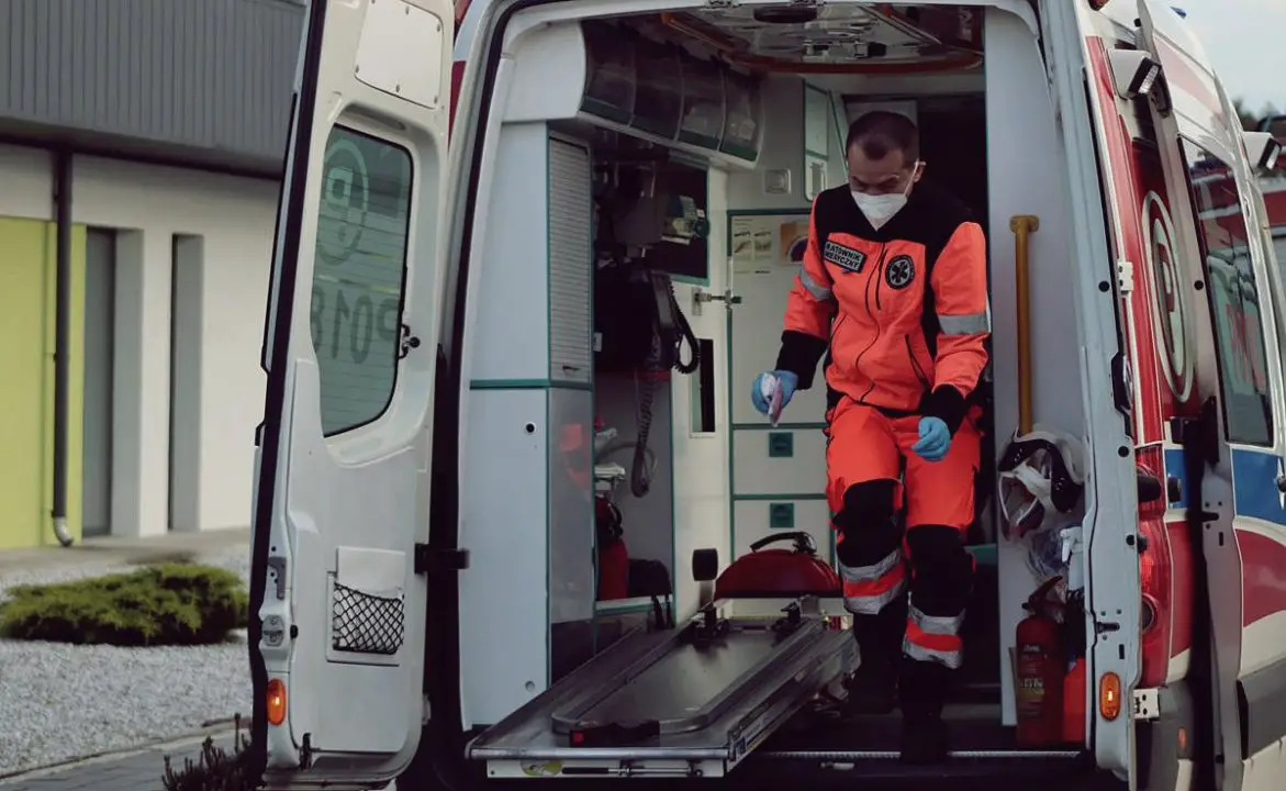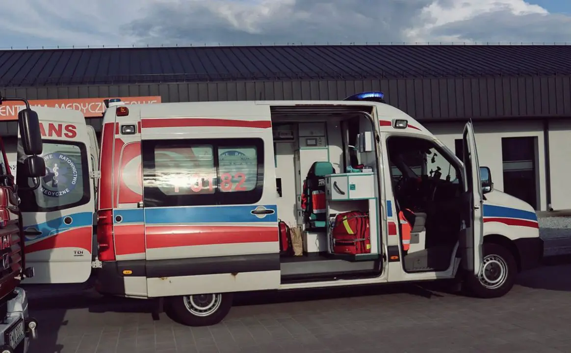 Ranny chłopiec po odcięciu kierownicy z wbitym w udo elementem trafił karetką do szpitala w Zielonej Górze. Tam od razu zajęli się nim lekarze.