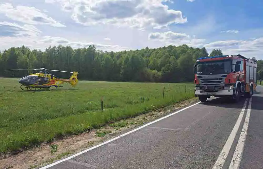 Na miejsce dojechały trzy zastępy straży pożarnej, karetka pogotowia ratunkowego oraz policja. Wylądował również śmigłowiec Lotniczego Pogotowia Ratunkowego. – Natychmiast ruszyała walka o życie motocyklisty, był nieprzytomny i długo reanimowany – mówi mł. bryg. Kaniak. W samochodzie osobowy były dwie osoby dorosłe i dziecko. Nic im się nie stało. Motocykl spłonął. – Niestety motocyklista zginął na miejscu wypadku – mówi kom. Grzegorz Jaroszewicz, rzecznik policji w Gorzowie.