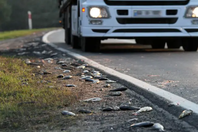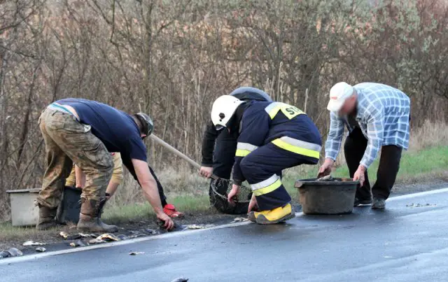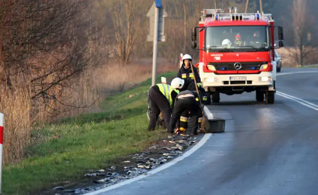 Ryby z pobocza zebrali pracownicy firmy, do której jechała ciężarówka. Sporą część ładunku udało się uratować. Strażacy zmyli śliską maź z asfaltu. Utrudnienia na drodze skończyły się przed godz. 19.00.