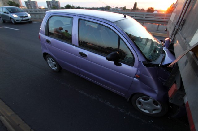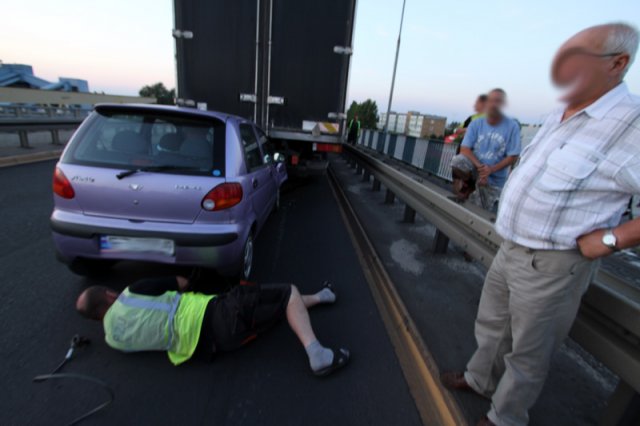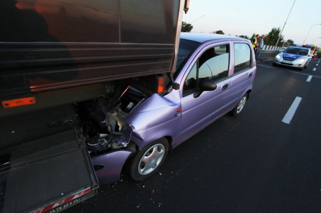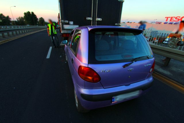 Matiz jechał al. Zjednoczenia w kierunku Przylepu. Kierowca za późno zauważył, że na jednym z pasów stoi uszkodzona ciężarówka iveco. Hamował, ale nieskutecznie, matiz uderzył w tył iveco.