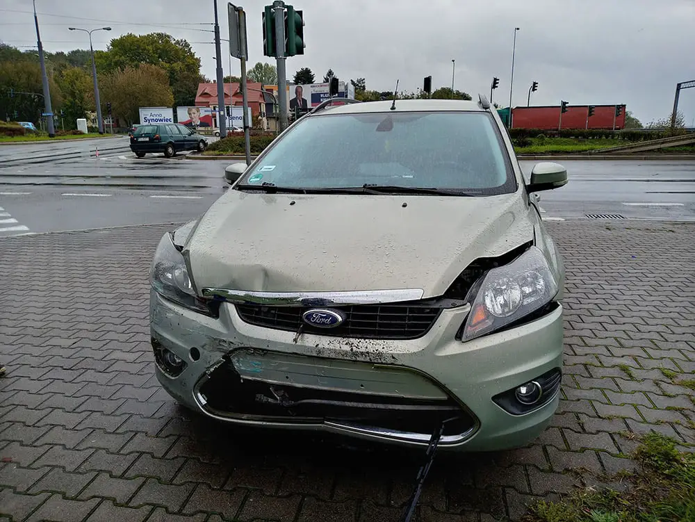 Kierujący volkswagenem golfem wjeżdżając na rondo wymusił pierwszeństwo kierującemu fordem mondeo. W rezultacie volkswagen uderzył w forda. Na miejsce została wezwana gorzowska policja. Nikomu nic się nie stało. Zdarzenie jest kolizją.