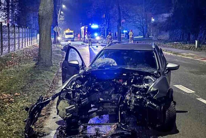 Krosno Odrzańskie. Pijany 22-latk Mazdą uderzył w drzewo