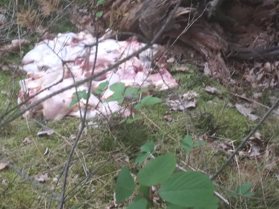 Mięso zostało znalezione przez spacerowiczów w środę, 18 sierpnia. Ktoś wyrzucił je w lesie koło ośrodka Wrzosy. W lesie leżą kawałki drobiu.