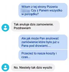 Osoba pod wskazanym adresem na widok osoby z jedzeniem była nie tylko zaskoczona, ale również wyraźnie zdenerwowana. – Mężczyzna nie zamawiał pizzy, a my byliśmy kolejną pizzerią, która pod ten adres dowiozła jedzenie – mówi właściciel pizzerii.