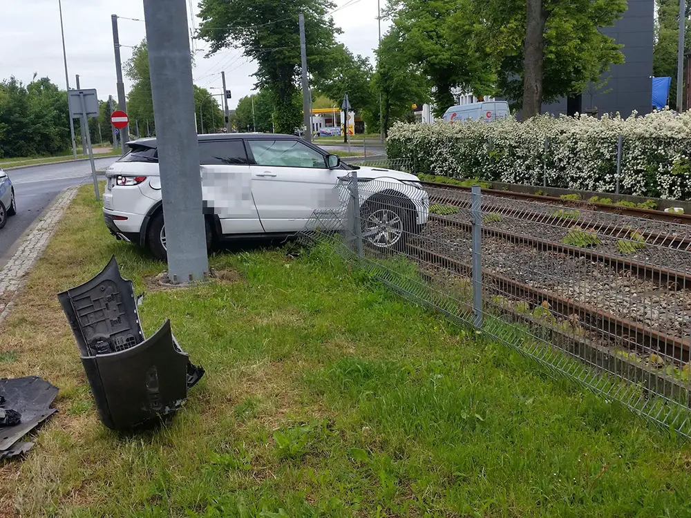 Kierująca land roverem jechała ul. Walczaka. Wymijała rząd samochodów jadąc pasem wyłączonym z ruchu. Wtedy uderzyła w zawracające renault. Land rover wypadł z drogi na torowisko. Siła uderzenia była na tyle duża, że w land roverze wystrzeliły poduszki powietrzne.
