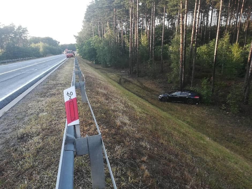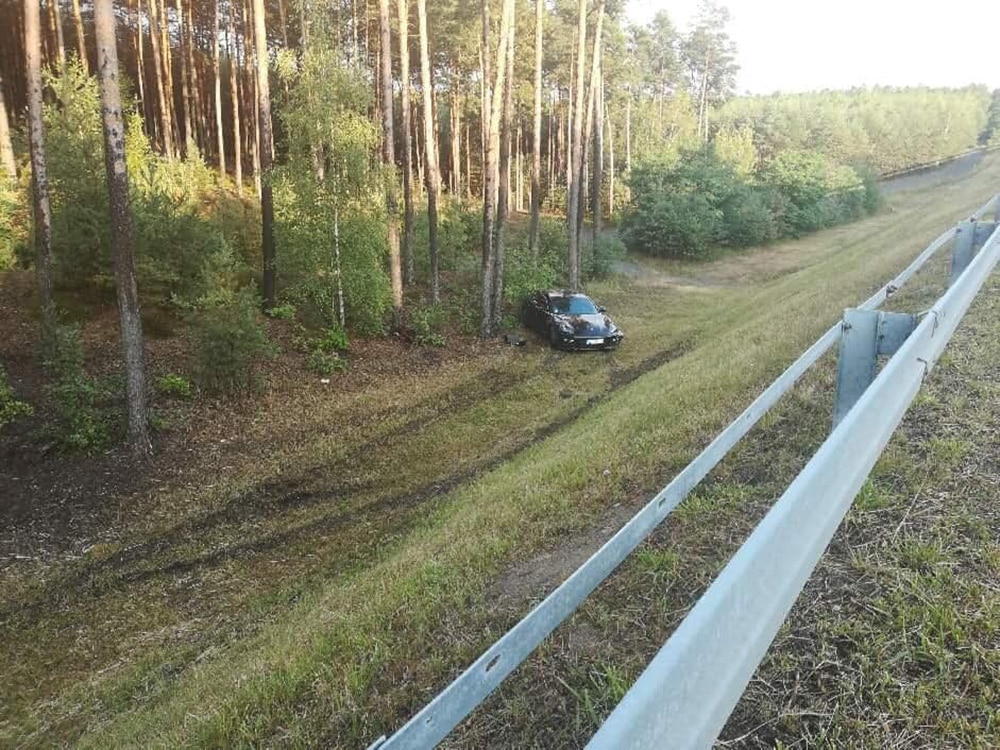 Do groźnie wyglądającego zdarzenia doszło późnym popołudniem. Kierujący porsche panamerą stracił panowanie nad kierownicą i wypadł samochodem z drogi. Samochód na poboczu okręciło, ale na szczęście nie uderzył w drzewa. Na miejsce przyjechała pomoc drogowa Maxmar z Zielonej Góry i wyciągnęła samochód z pobocza.