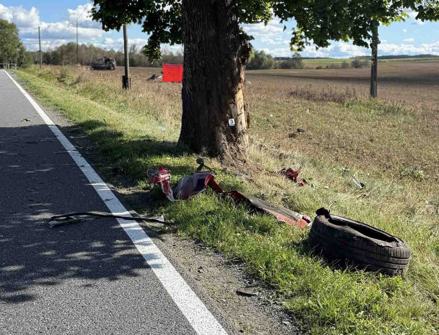 Do śmiertelnego wypadku doszło na DW 211 między Czarną Dąbrówką a Podkomorzycami. Kierujący Audi z niewyjaśnionych jeszcze przyczyn zjechał z drogi i na prostym odcinku, z potężną siłą uderzył w drzewo. Na miejsce dojechały służby ratunkowe. Części audi leżały w promieniu wielu metrów od drzewa. Części silnika daleko w polu.