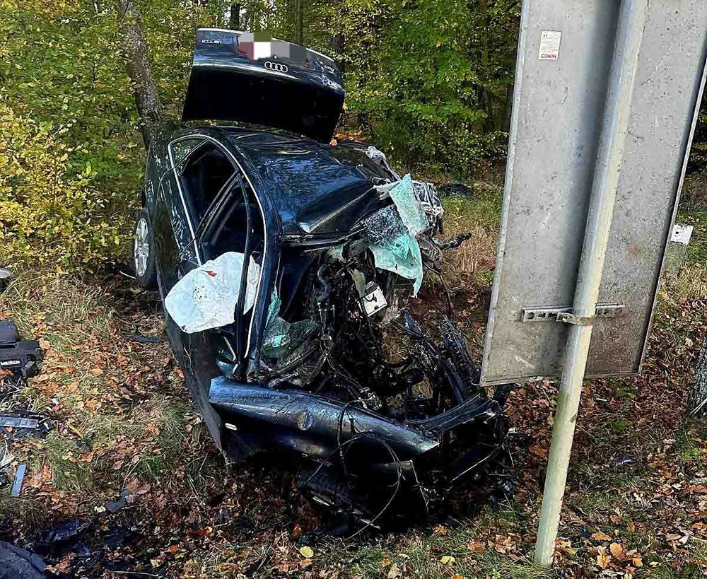 Do tragedii doszło w niedzielę, 19 października DW331 na trasie Chocianów – Parchów. Kierujący Audi z potężną siła uderzył w drzewo. Zginął na miejscu.