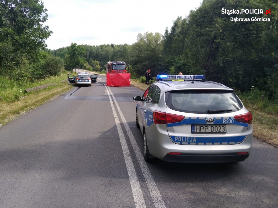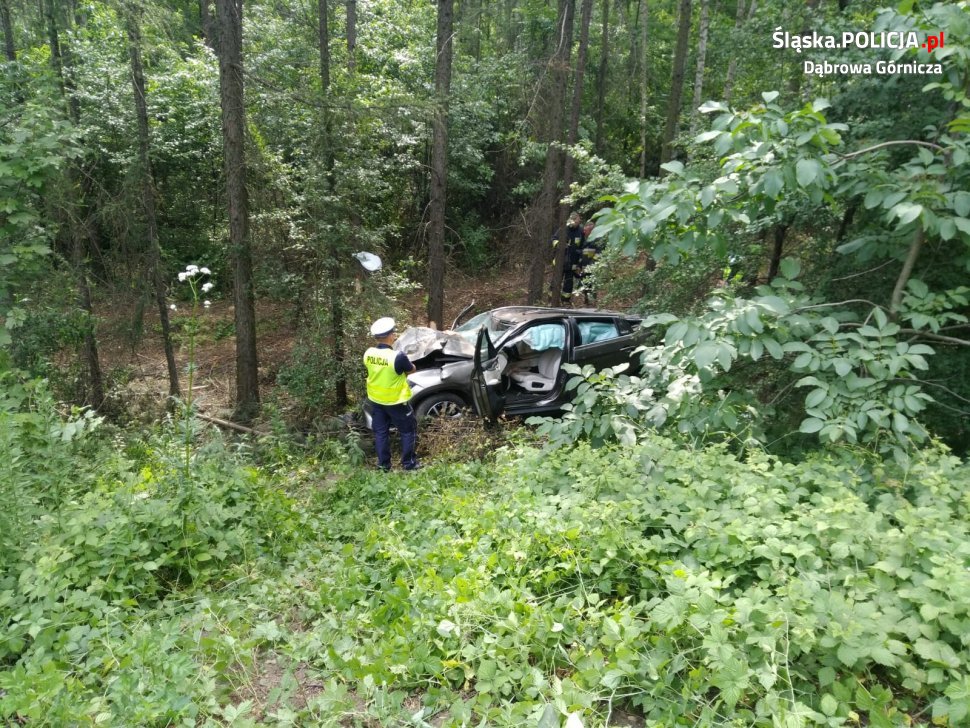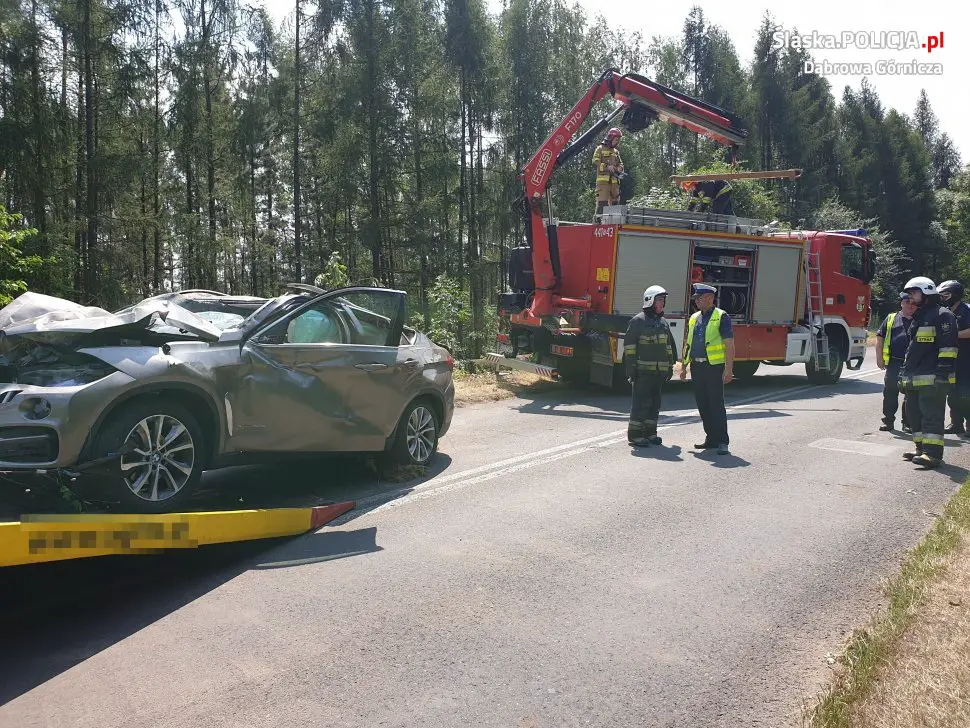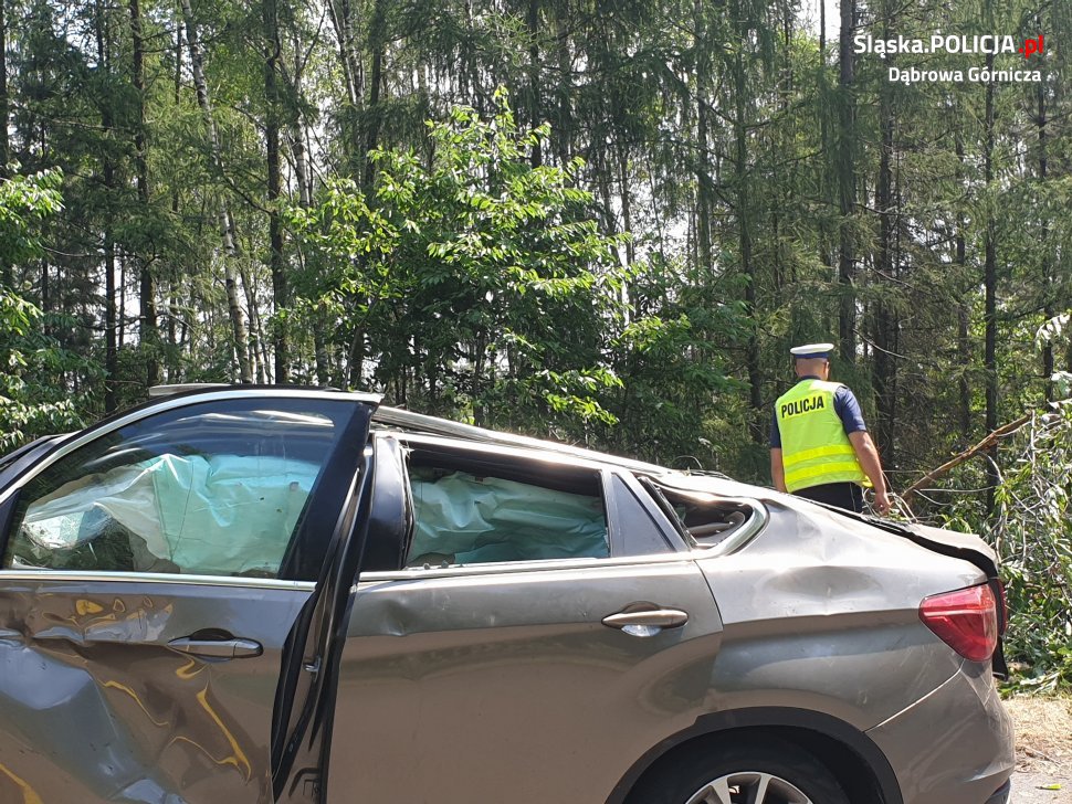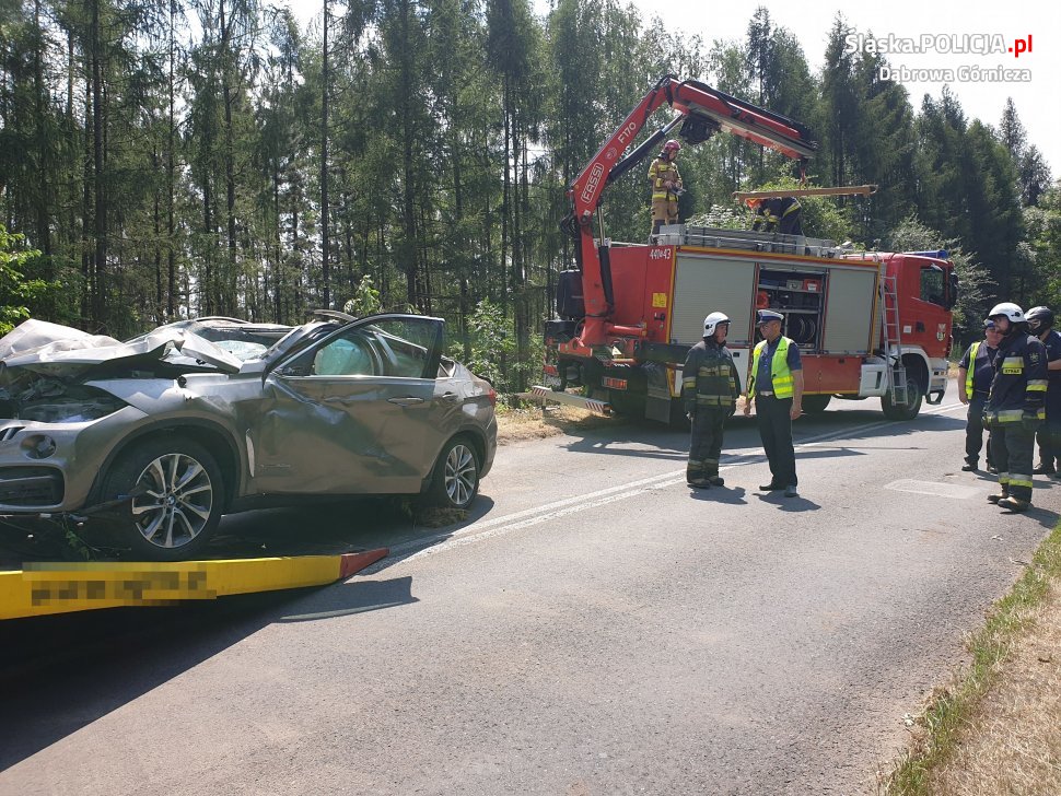 Do śmiertelnego wypadku doszło we wtorek, 2 lipca, na drodze wojewódzkiej nr 790 w pobliżu skrzyżowania z ul. Kazdębie w Dąbrowie Górniczej. Ze wstępnych ustaleń policjantów wynika, że kierujący bmw x6 na łuku drogi, prawdopodobnie po zakończeniu manewru wyprzedzania, stracił panowanie nad pojazdem. Bmw wypadło z drogi, a następnie koziołkowało z nasypu na koniec uderzając w drzewa.