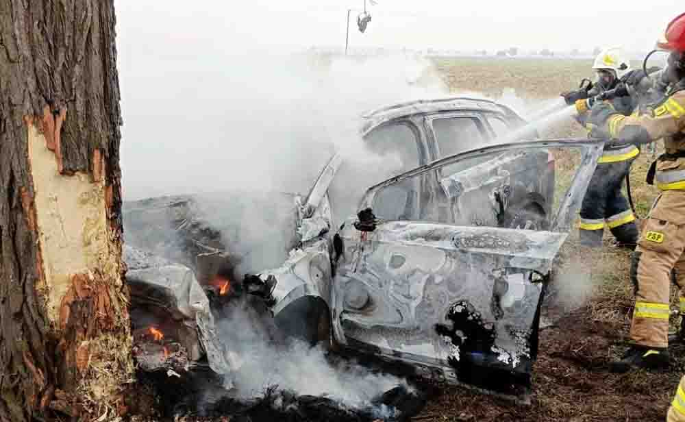 Po uderzeniu w drzewo elektryczna Skoda stanęła w płomieniach. Samochód ugasili strażacy. Kierowca nie miał żadnych szans. Spłonął w samochodzie. Przyczynę oraz okoliczności śmiertelnego wypadku ustalać będzie pleszewska policja.