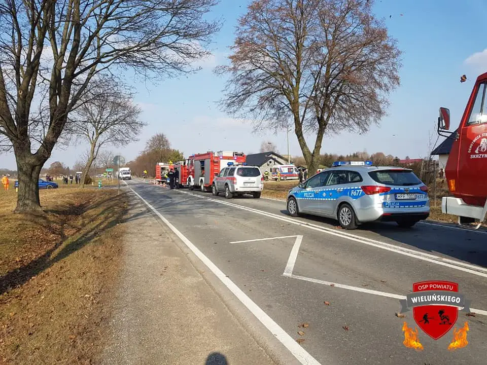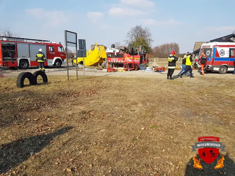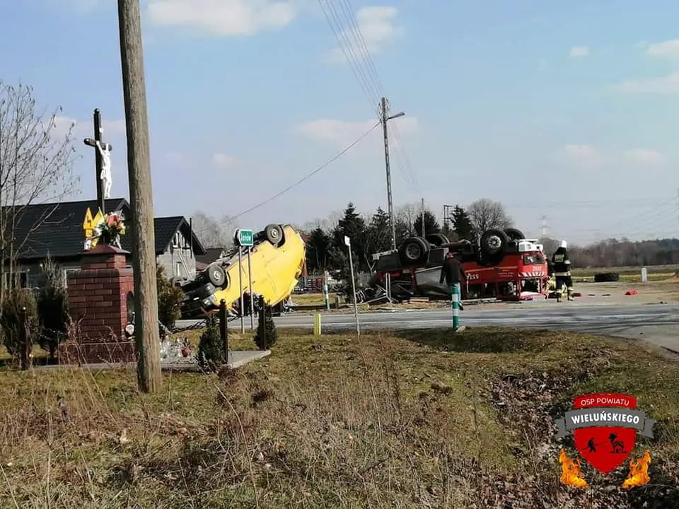 Do poważnego wypadku doszło w, środę 10, marca, na drodze krajowej nr 45 koło Wielunia (woj. łódzkie). Bus zderzył się z wozem, strażackim. Oba pojazdy na koniec dachowały. Ranne zostały trzy osoby, stan jednego ze strażaków jest ciężki.