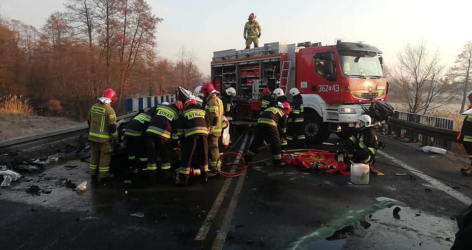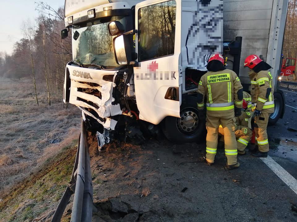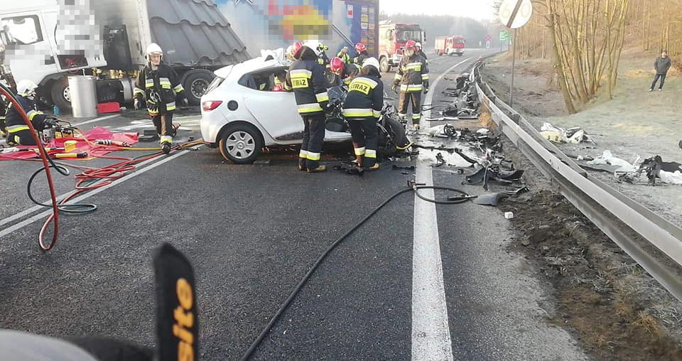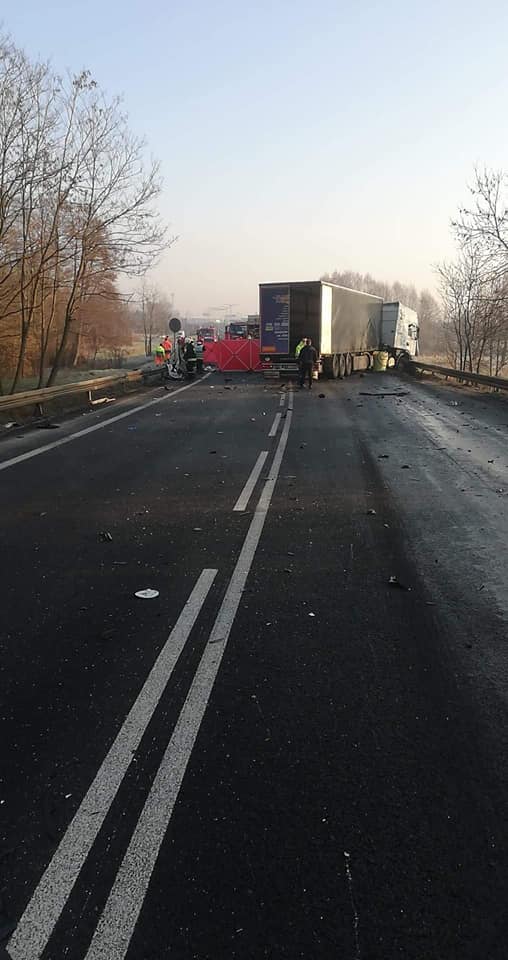 Na trasie zderzyły się ciężarówka i samochód osobowy. Na miejsc szybko dotarły służby ratunkowe. Poszkodowany z osobówki był wycinany przez strażaków. Niestety jedna osoba zginęła na miejscu. Policjanci z prokuratorem ustalają dokładne przyczyny oraz okoliczności wypadku.