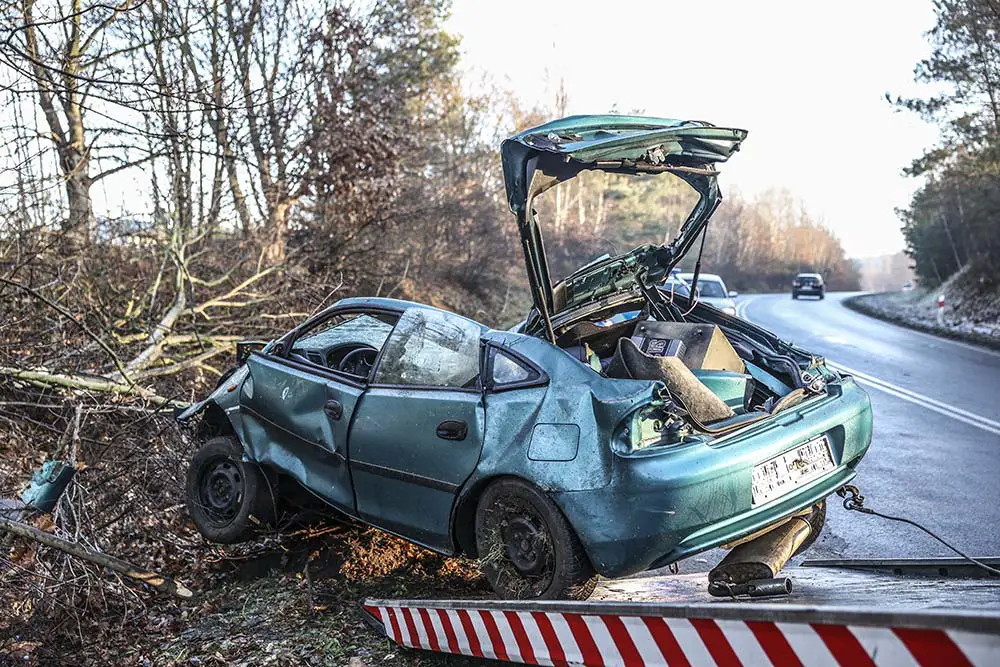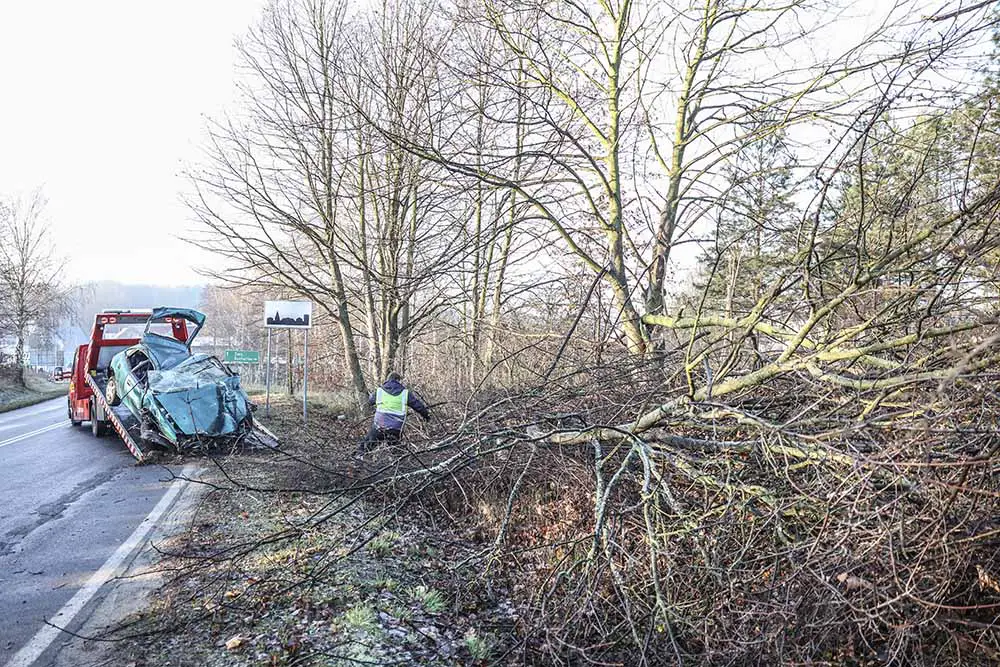 Do zdarzenia doszło w sobotę, 19 grudnia. Mazda z ogromną prędkością wypadła z drogi w Wilkanowie pod Zieloną Górą. Samochód uderzył w drzewa przodem i dachem łamiąc kilka z nich. Mazda została dosłownie zmiażdżona. Kierowca cudem przeżył i uciekł z auta. Szuka go zielonogórska policja.