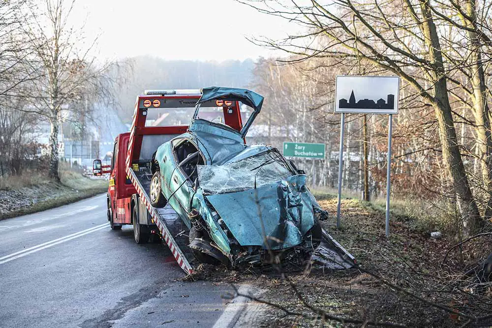 Kierujący mazdą jechał drogą w Wilkanowie w kierunku Zielonej Góry. Na zakręcie podjeżdżają pod górkę mazda wypadła z drogi. Prędkość samochodu musiał być ogromna. Mazda uderzyła w drzewa przodem i dachem. Siła uderzenia był potężna, kilka grubych drzew zostało złamanych.