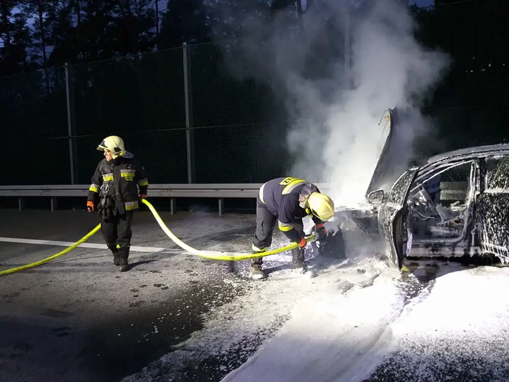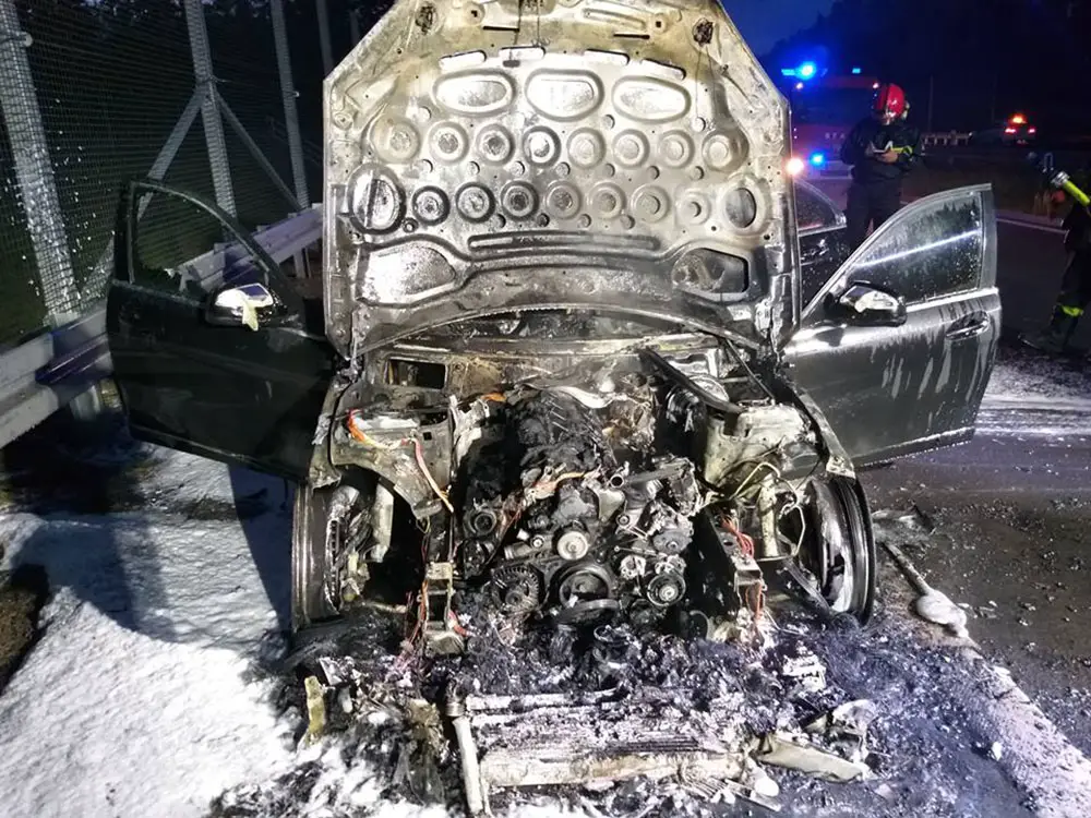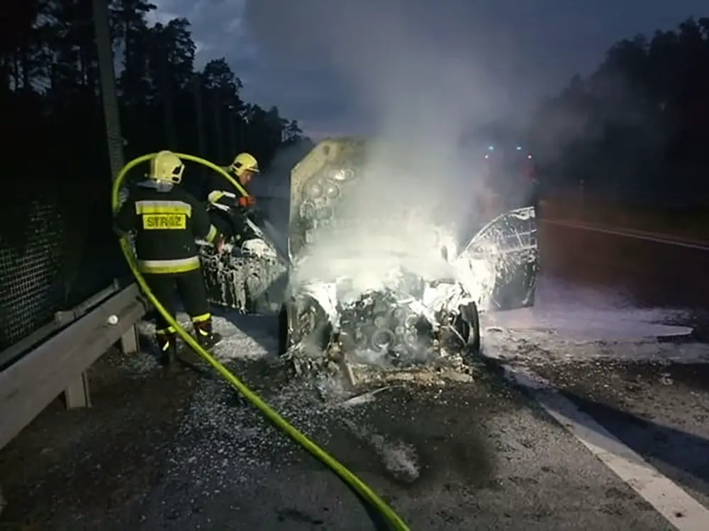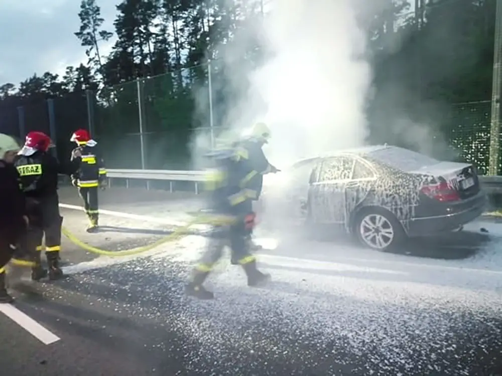 Niestety mercedes spłonął. Samochód nie nadaje się już do użytku. Okazało się, że kierowca pół godziny wcześniej kupił mercedesa C220. W drodze do domu nowym autem doszło do pożaru.