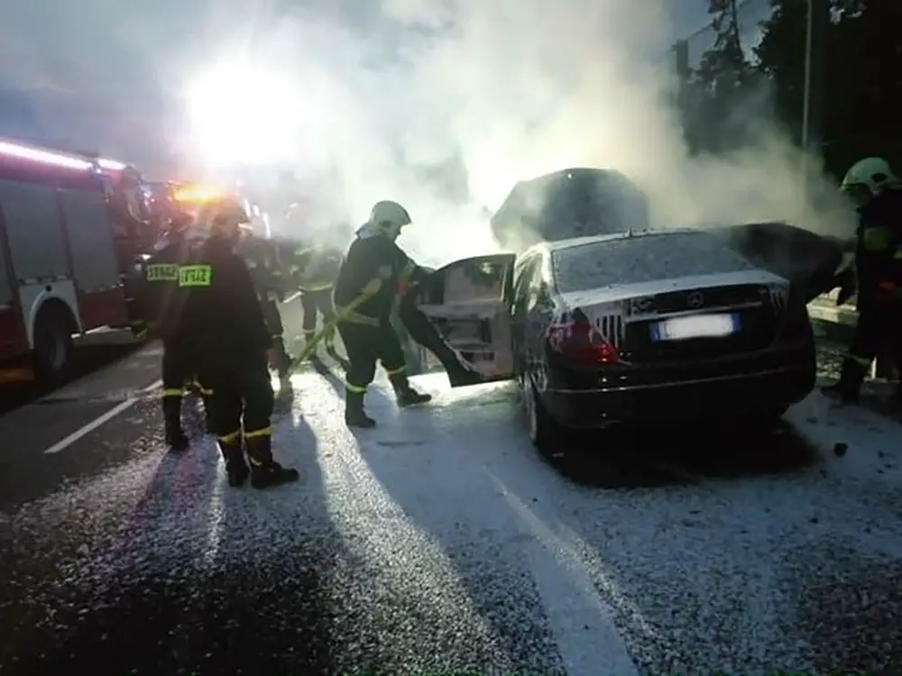 Wszystko wydarzyło się we wtorek, 14 sierpnia, około godz. 20.30. Kierujący mercedesem na włoskich tablicach rejestracyjnych, podczas jazdy zauważył dym wydobywający się spod maski. Po chwili mercedes stanął w płomieniach.