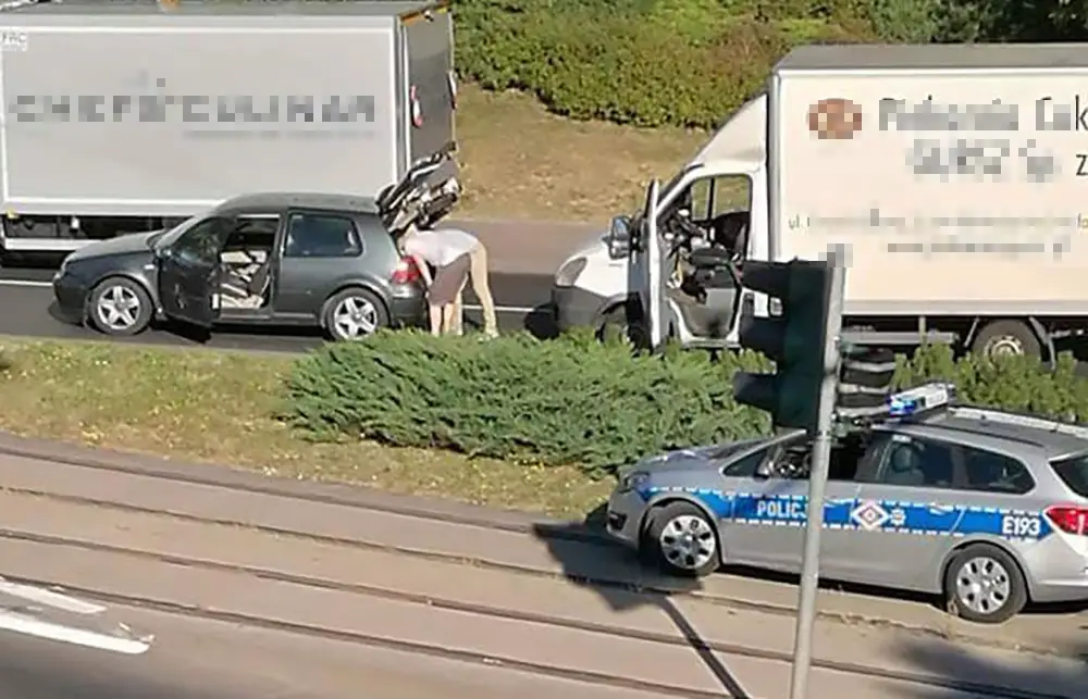 Kierowca volkswagena został ukarany mandatem w wysokości 500 zł. Dostał też 6 punktów karnych. Drugiej kolizji policji nie zgłoszono.