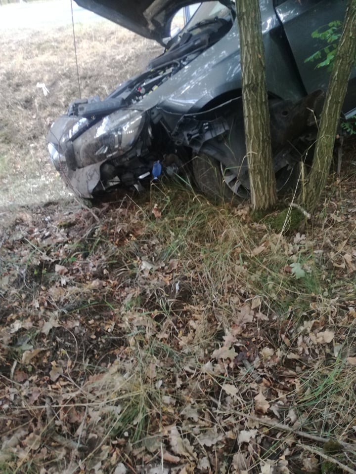 Kierujący mercedesem wpadł w poślizg i stracił panowanie nad samochodem. Mercedes wypadł z drogi i uderzył w drzewo. Na miejsce została wezwana ekipa kartki pogotowia ratunkowego.